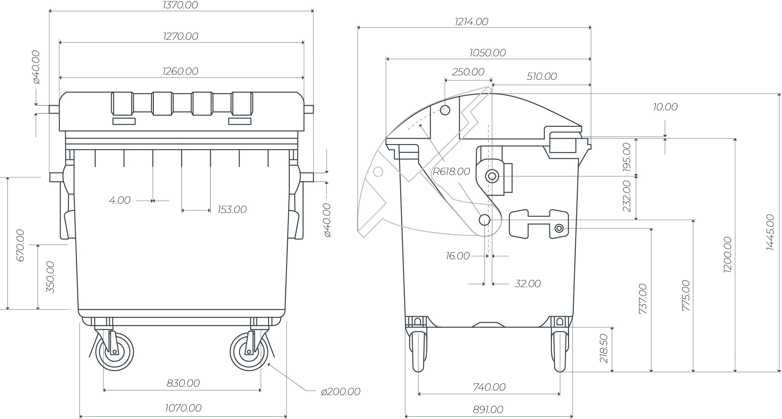 Možnost přizpůsobení kontejneru pomocí termoo tisku pro zvýšení trvanlivosti označení.