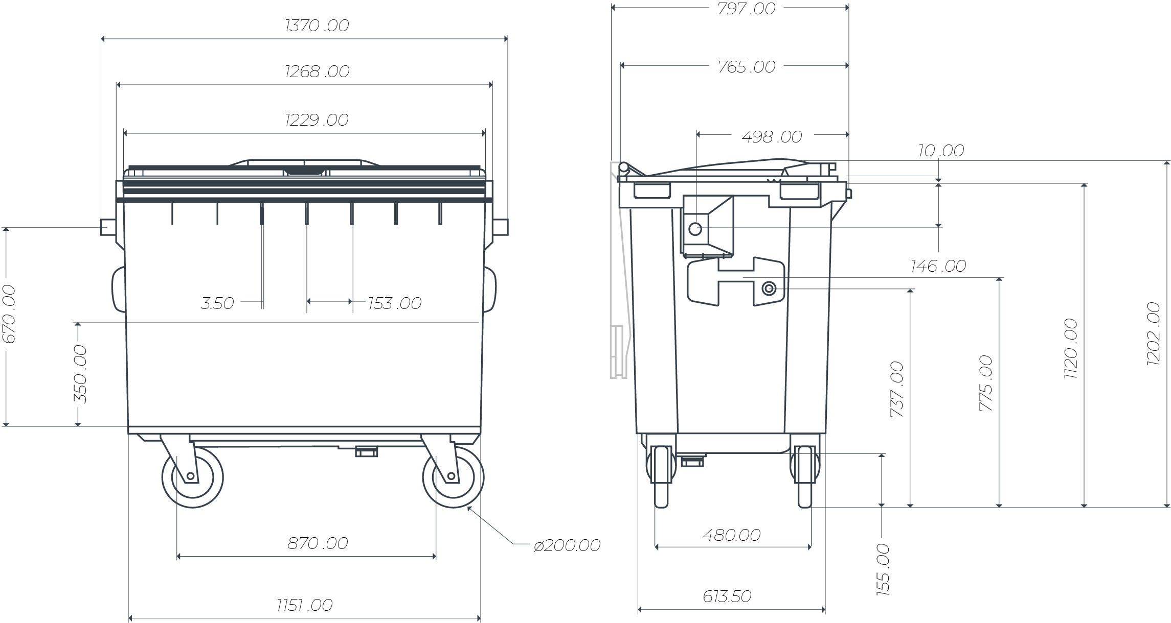 Kryt proti dešti s mechanickým zámkem na klíč, který umožňuje kontrolovat přístup uživatele ke kontejneru a velikost ukládaného odpadu.