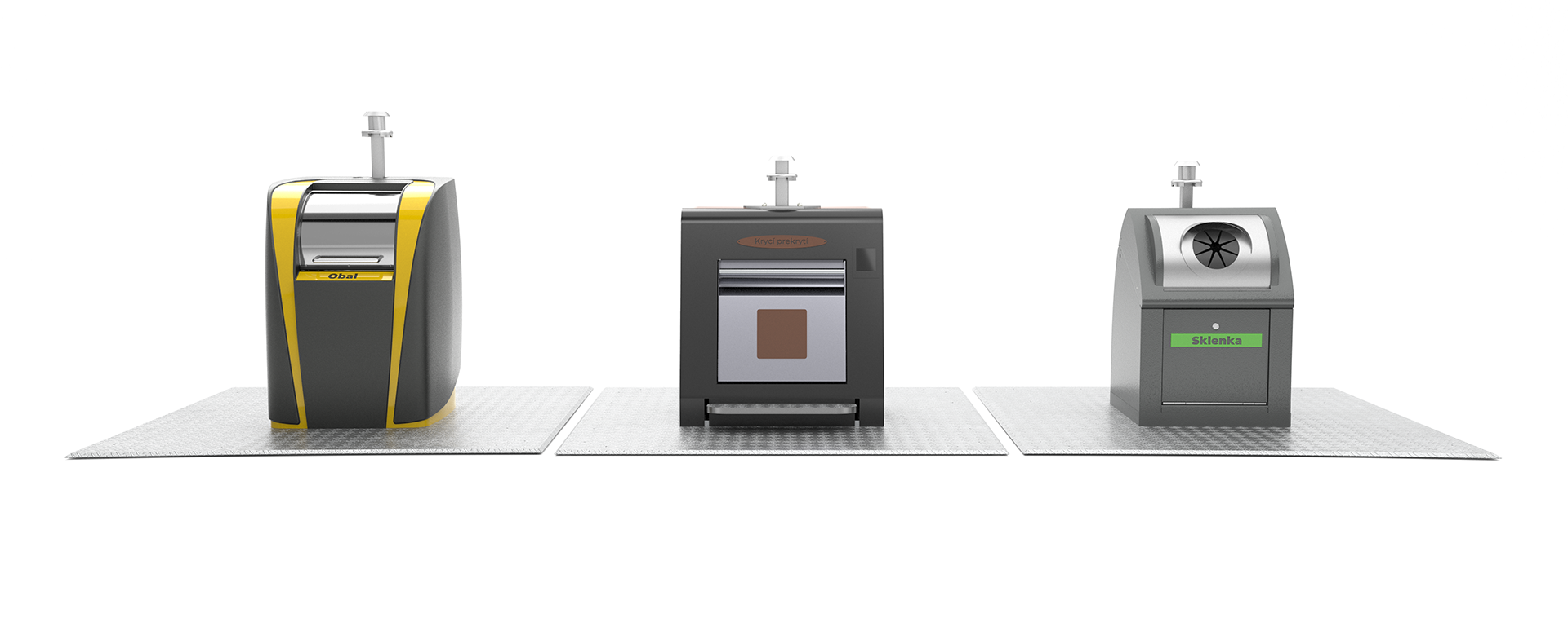 | Evolution | Pozinkovaná ocel / nerez | 951 mm | 80/100/120 litrů | 60/80/100 litrů | Vhoz na Sklo / Plasty / Papír |